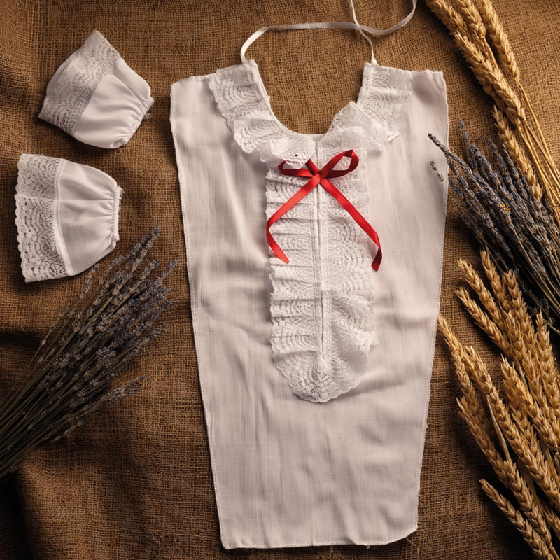| Conjunto de accesorios distintivos del atuendo tradicional de la huasa chilena. Son piezas desmontables que permiten transformar una blusa tradicional en una blusa de huasas. Fabricada en trevisa 65% poliéster y 35% algodón, con adornos de encaje. Disponible en color blanco en un tamaño único. |