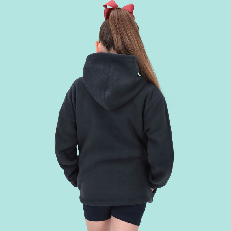 | Polerón polar unisex color azul, cómodo, con gorro y bolsillos en el costado; una prenda infaltable para la temporada escolar. Confeccionado en 100% poliéster. |